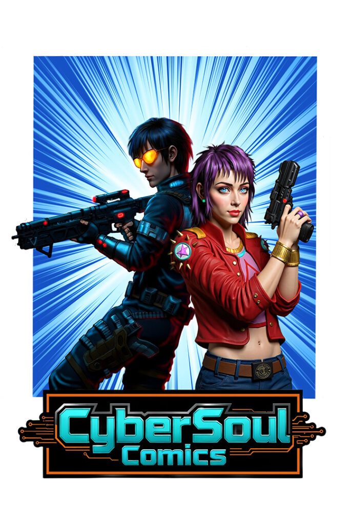 Explore the exclusive CyberSoul Comics Genesys collection, featuring vibrant full-color volumes of my Amerimangas, limited editions, artwork from every series, and unique cyberpunk art that brings to life the technology and myths of the Year of Cybernetic Dominion…